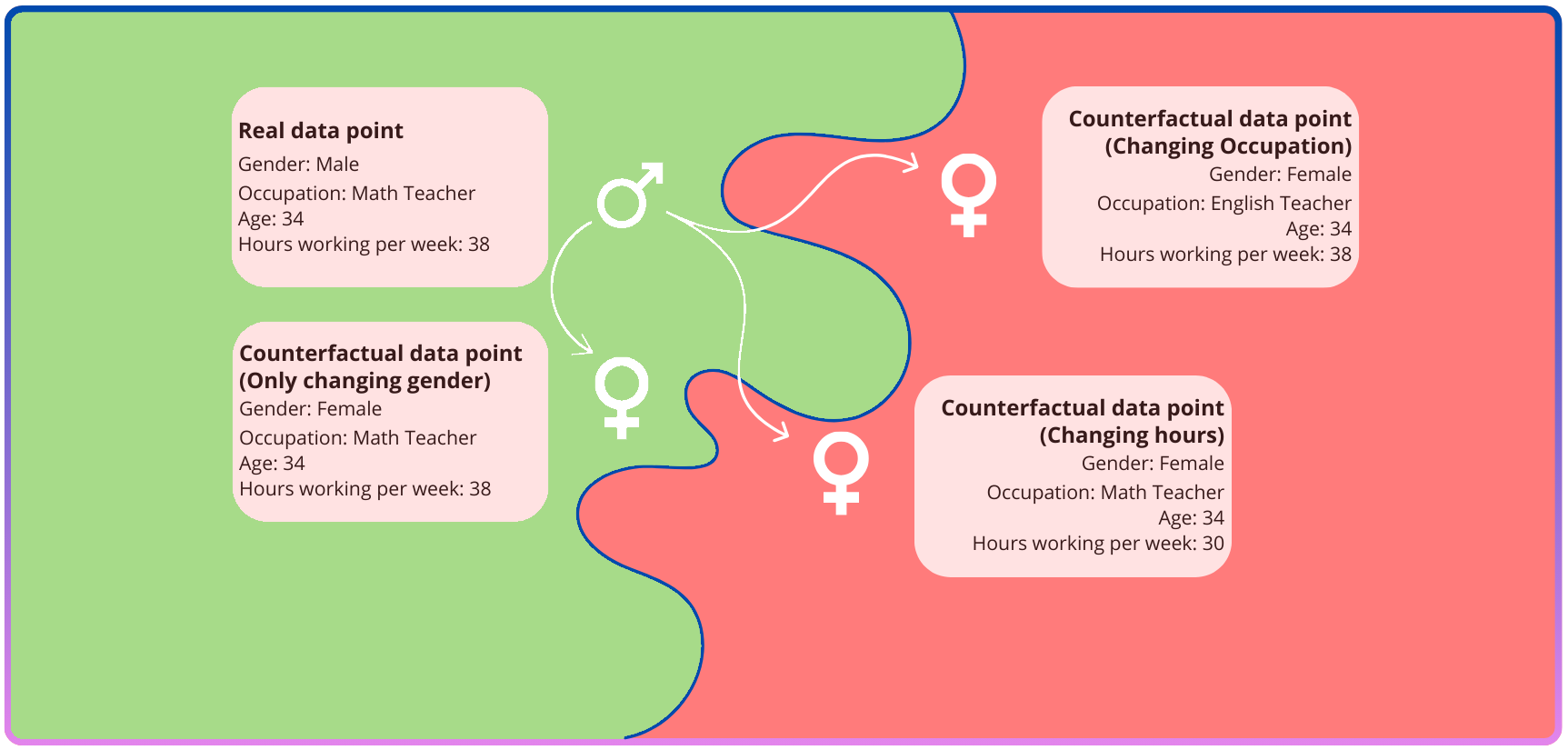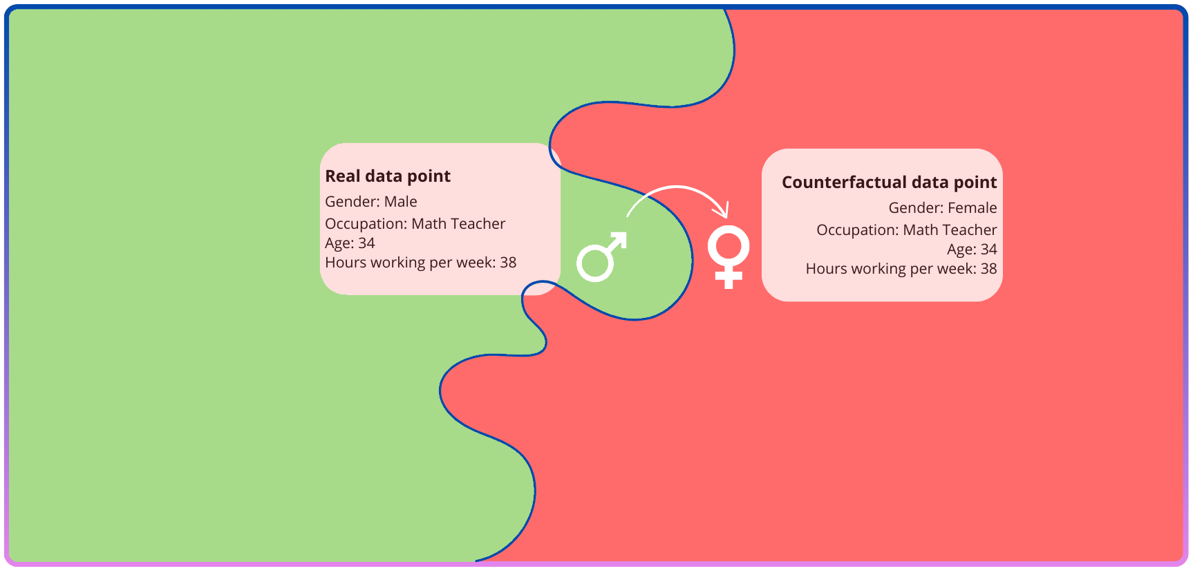 Counterfactual fairness is a currently popular type of explainable AI. Counterfactual fairness stems from systems that check for direct discrimination, meaning that simply changing a personal attribute would change a person’s prediction