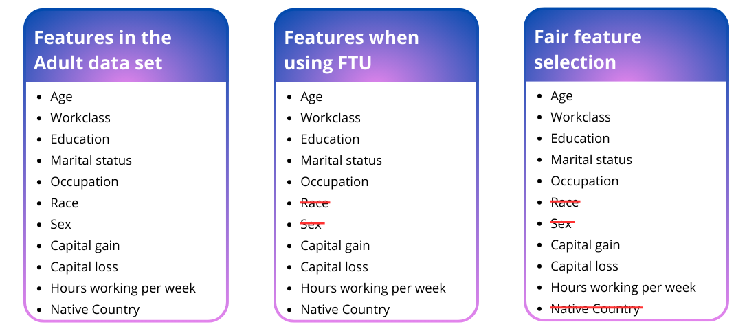 Related to fairness through unawareness is fair feature selection