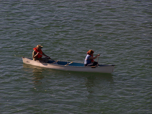To clarify, the difference is not only in the boat shapes, with a kayak being flatter, but also in how they are paddled. A canoe is typically paddled in a kneeling position (though seated paddling is common) with a short single-bladed paddle, while a kayak is paddled from a seated position with a long double-bladed paddle. Interestingly, “paddle, boat paddle” is a separate class in ImageNet-1k.