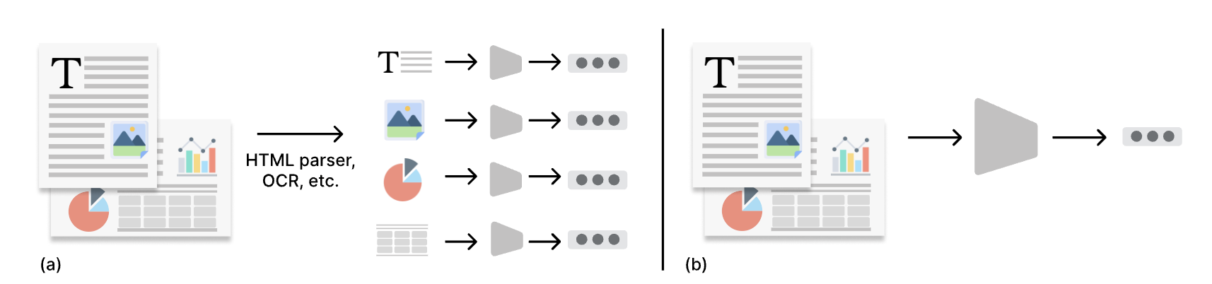 Addressing these challenges requires advanced retrieval systems that are capable of seamlessly integrating and processing each modality, making it possible to extract meaningful insights from even the most complex document formats.