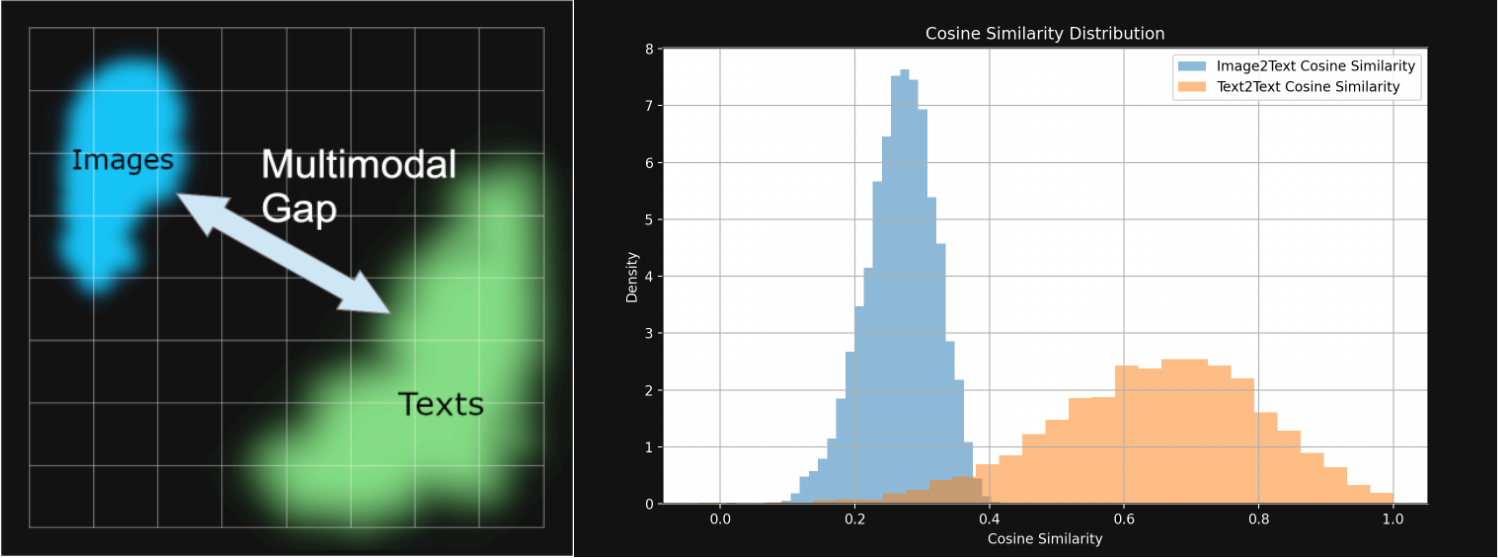 Figure 3: Visualization of the modality gap between text and image embeddings.