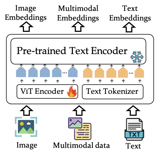 Figure 3: VISTA's architecture integrates visual tokens into text embeddings.